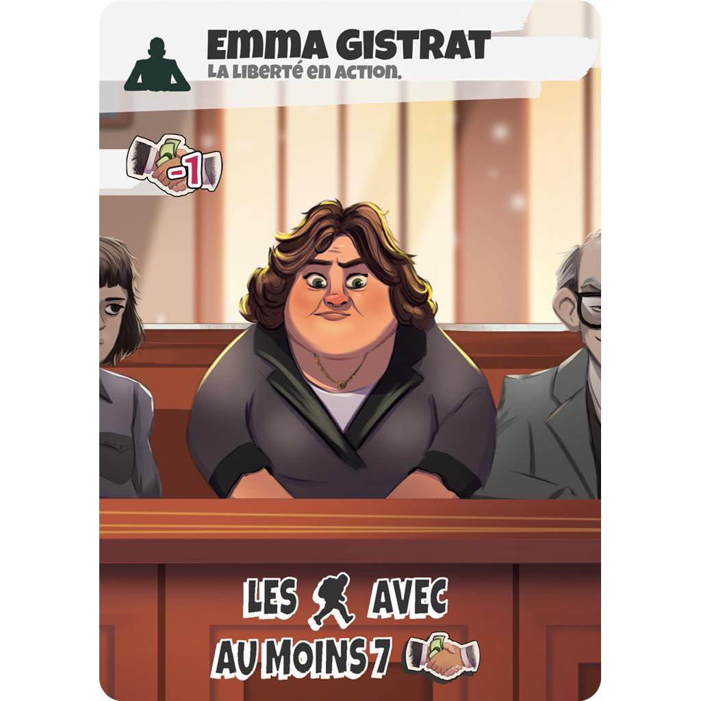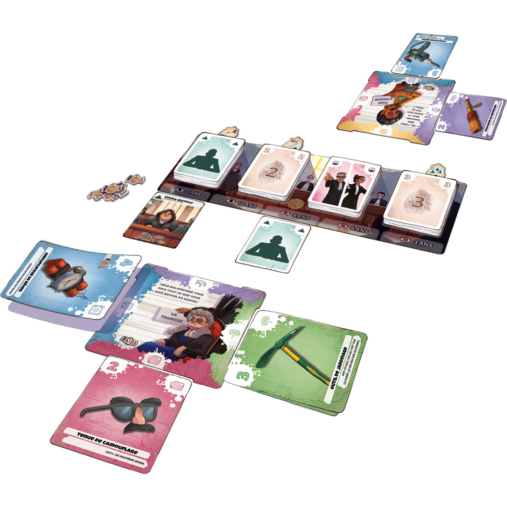 Le verdict final dépend du total d’années de prison accumulées par les preuves encaissées et les jurés posés. Chaque partie est rythmée, tendue et drôle, avec une forte rejouabilité grâce aux talents asymétriques des crapules et aux nombreux jetons Balance offrant des effets uniques.